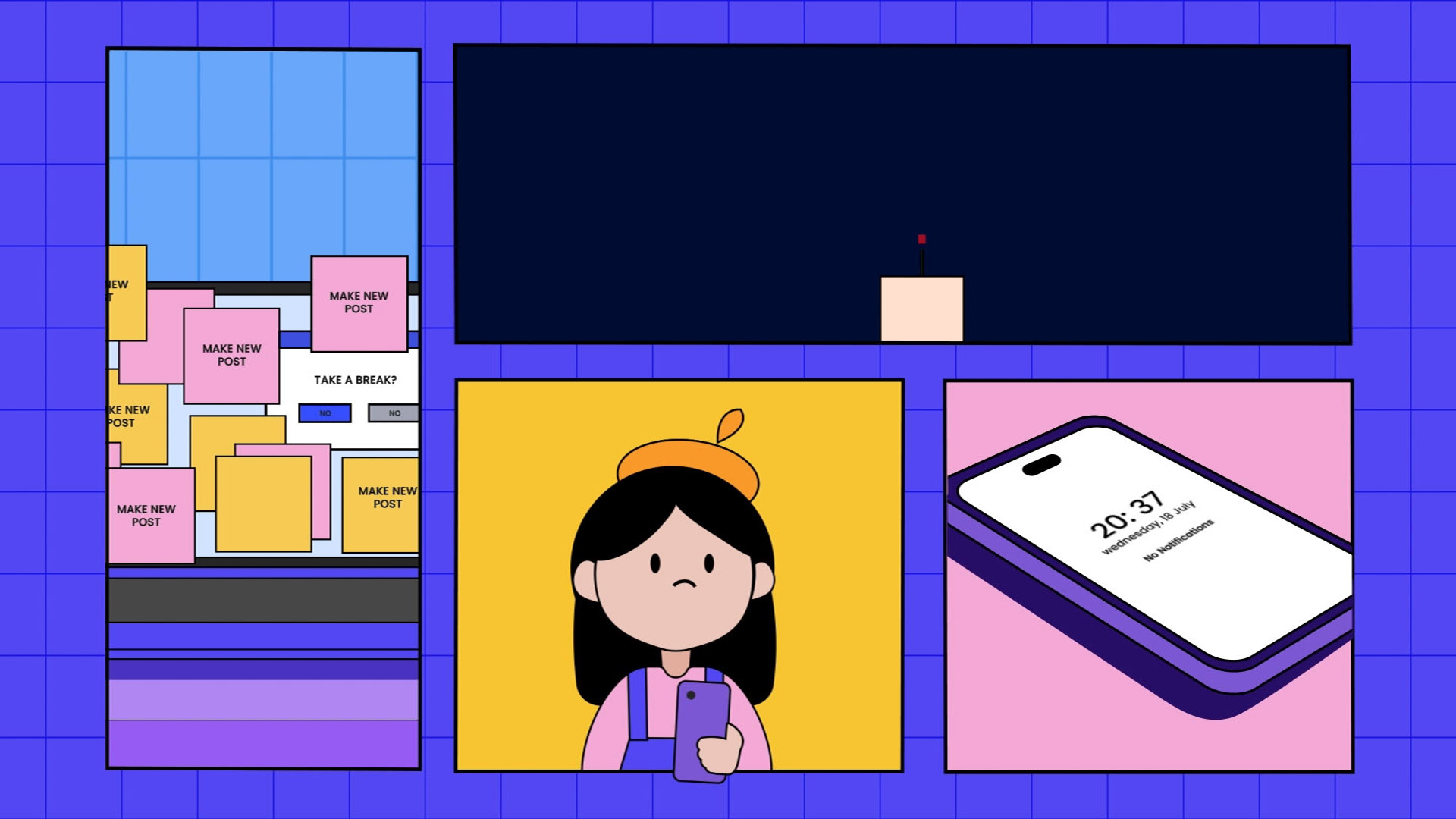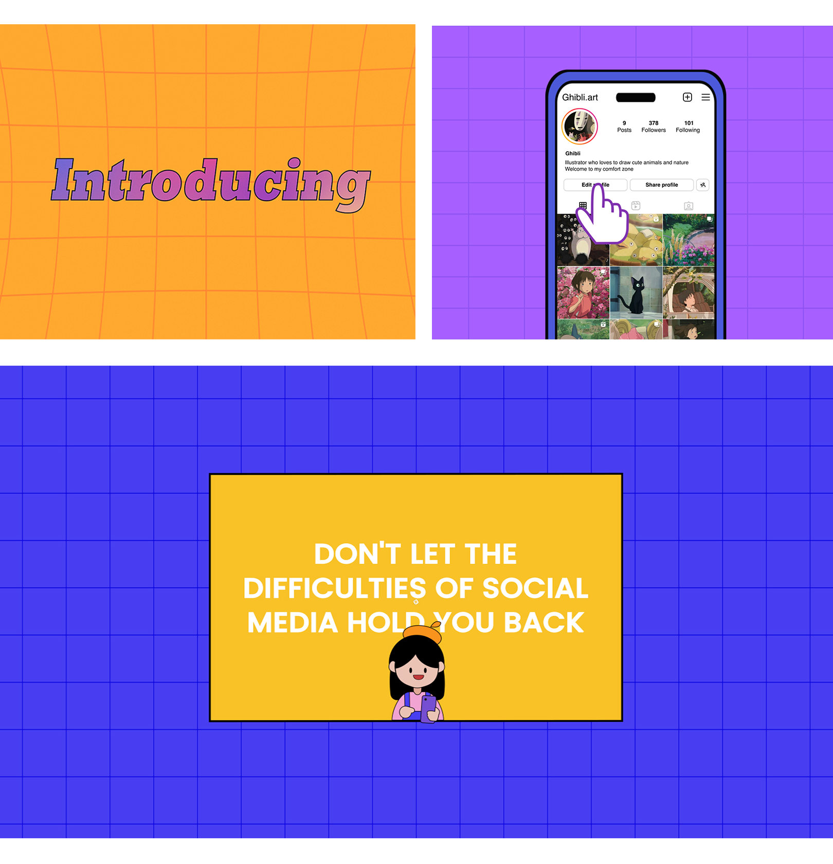 The explainer video features a little girl as an artist wanting to pursue an art career on Instagram, facing the challenges to get engagement and burnout. The design approach for the animation focuses on creating a vibrant and visually colorful scene.